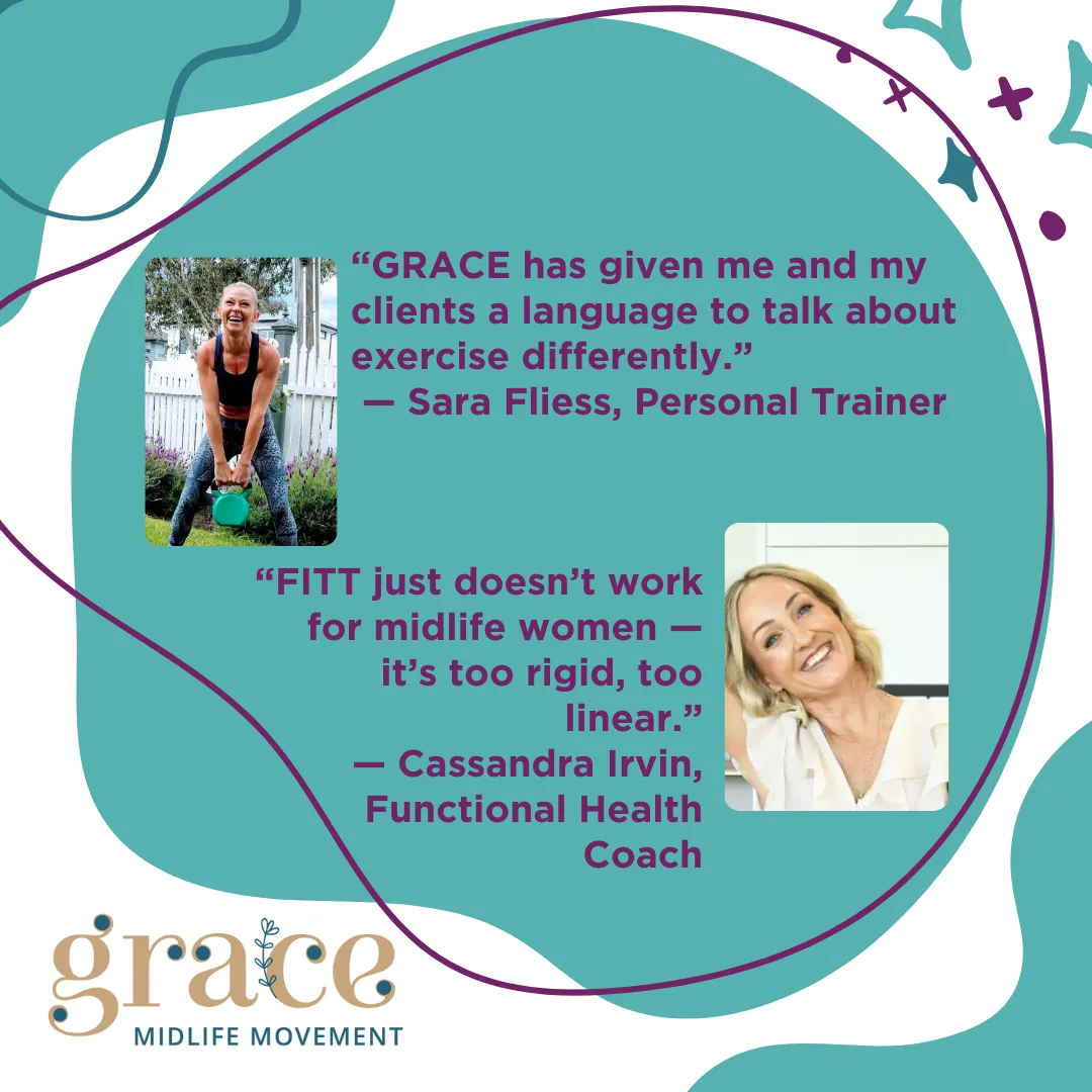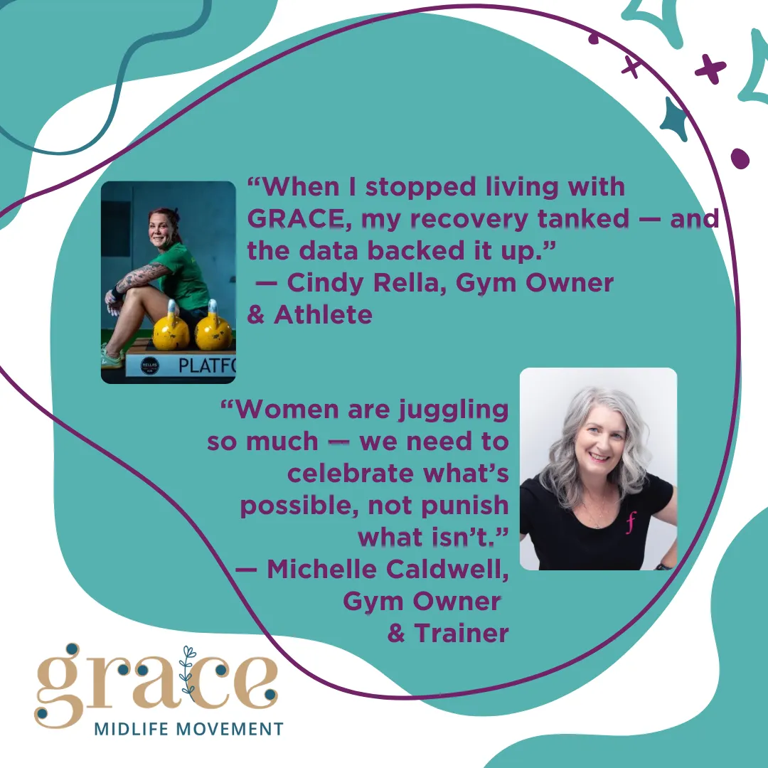 GRACE™ has been shaped and stress-tested by trainers, gym owners, and industry leaders working with women in midlife.